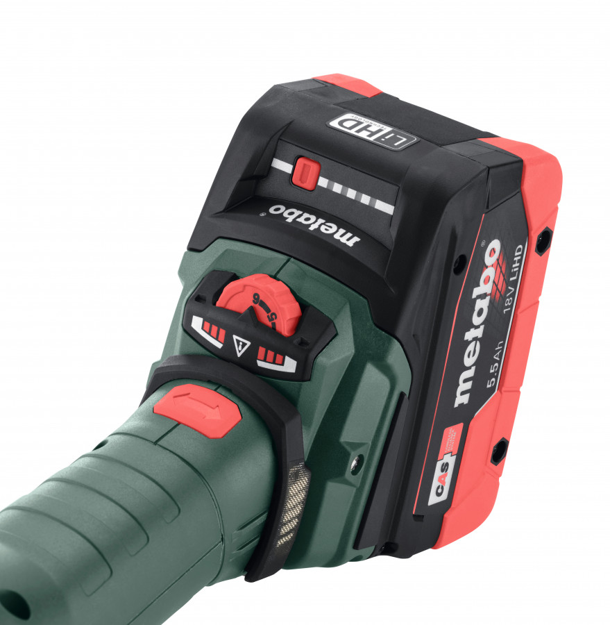 Akumulatora leņķa slīpmašīna ar plakanu galvu WVBF 18 LTX BL 15-125 Quick, karkass, MetaBOX, Metabo